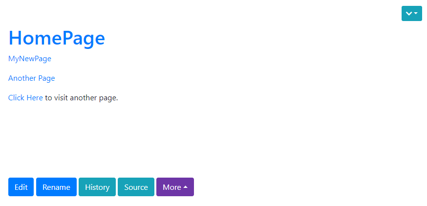 Click the link to go to the Another Page. Notice that the Another Page now has a backlink — it is no longer an orphan. Remember, Tiki does this automatically. Use the backlink to return to the Home page.