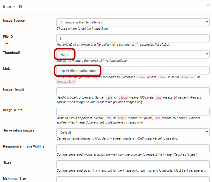 - Click the  Plugin edit button. The Image Plugin window appears.