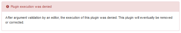 - To reject the plugin, click Reject to disapprove the plugin and deny its execution. Tiki displays the following message: