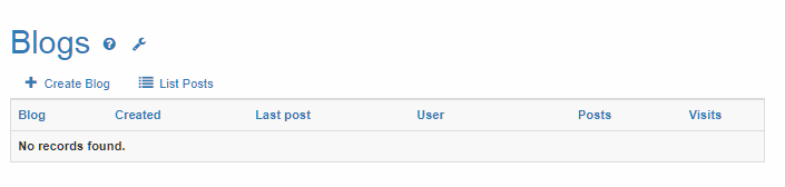 The List Blogs page shows the blogs on your site. Right now there are none!