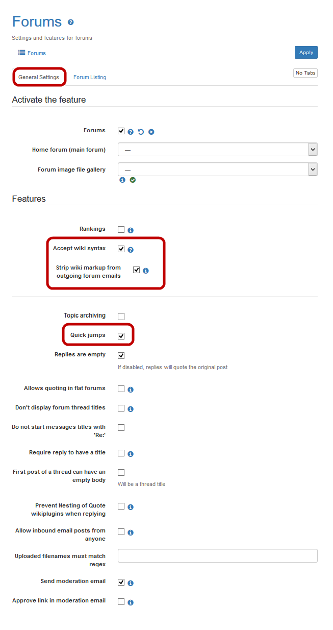 - Accept  wiki syntax: This will allow you to use the same wiki syntax  (that you used when creating a wiki page) in the forums.