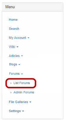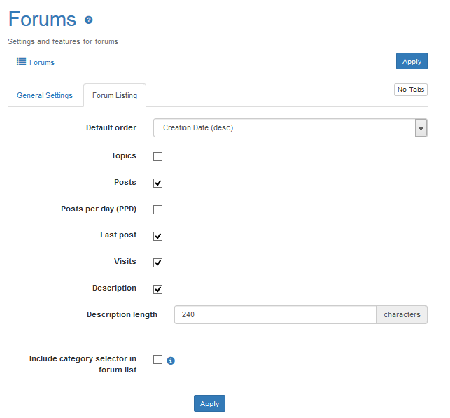 Use the Forums Listing tab to determine which columns appear when listing the forums.