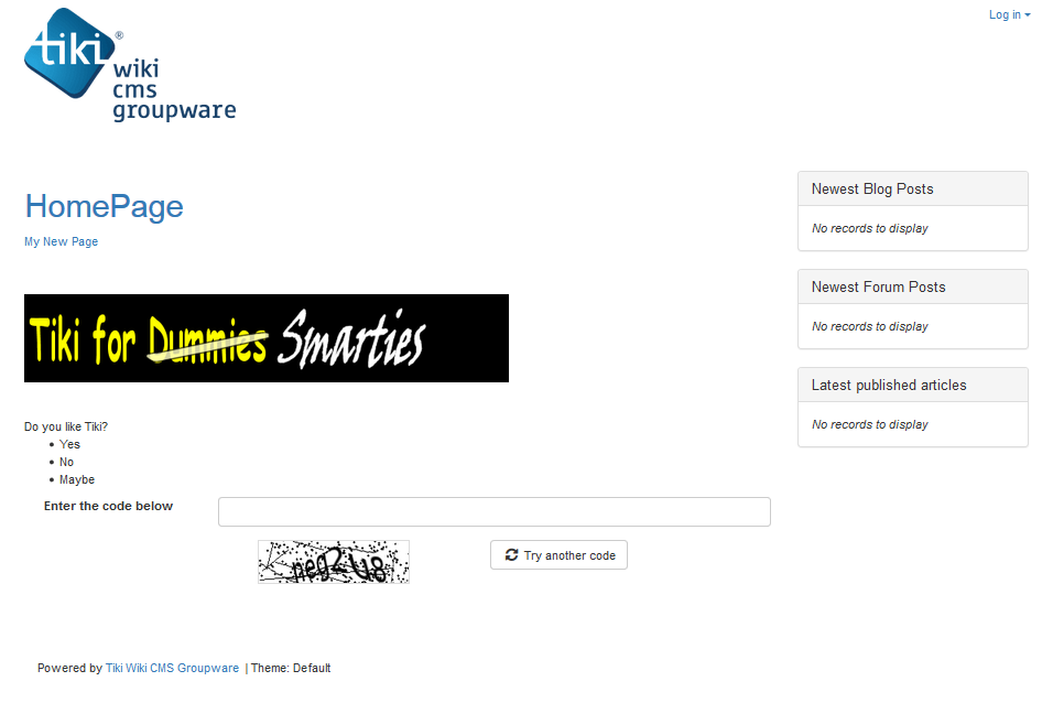 Since you have been logged in as the Administrator, you have had full access (permission) to every Tiki feature. Let's see what a typical visitor would see.