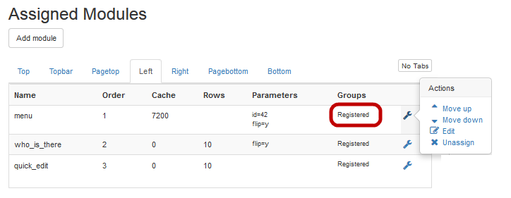 By default, Tiki includes a single menu that includes all options. Visitors are automatically shown only the options to which they have access.