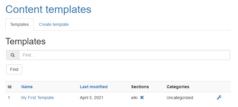 1. From the Admin menu, select Settings > Content templates. The Admin templates page appears.
