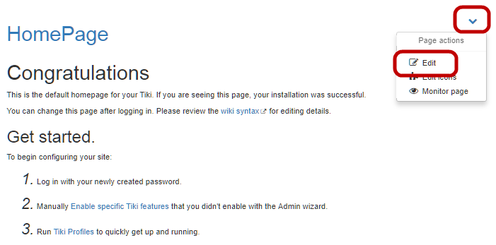 By default, your site's home page is the wiki page named HomePage. You can change this to be any wiki page that you want — or even a different feature (such as a blog or article). Later you will learn how to configure a custom home page. - Label: Type