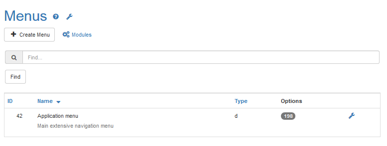 - From the Main menu, select Admin > Menus.