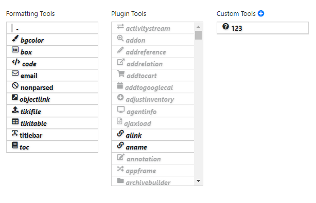 - Formatting Tools — These are "standard" Tiki functions.