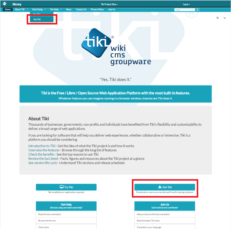 You can also get the Tiki files, including developer and pre-release versions, directly from the development environment (code repository). Refer to the Tiki Developer's Corner for details.