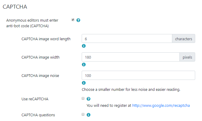 - Tiki CAPTCHA with 100 noise (default)