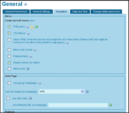 With Tiki, the "home" page for your site can be a specific Tiki feature (such as the wiki or a forum) or any other valid URL.