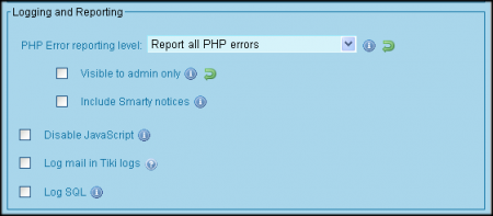 If you're getting blank pages or experiencing other issues, you can tell Tiki to explicitly report and display all PHP and Smaraty errors.