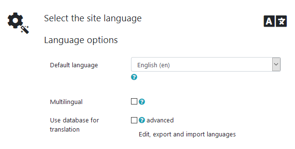 - To enable Tiki's multilingual and international features (such as wiki page translations), select Multilingual.