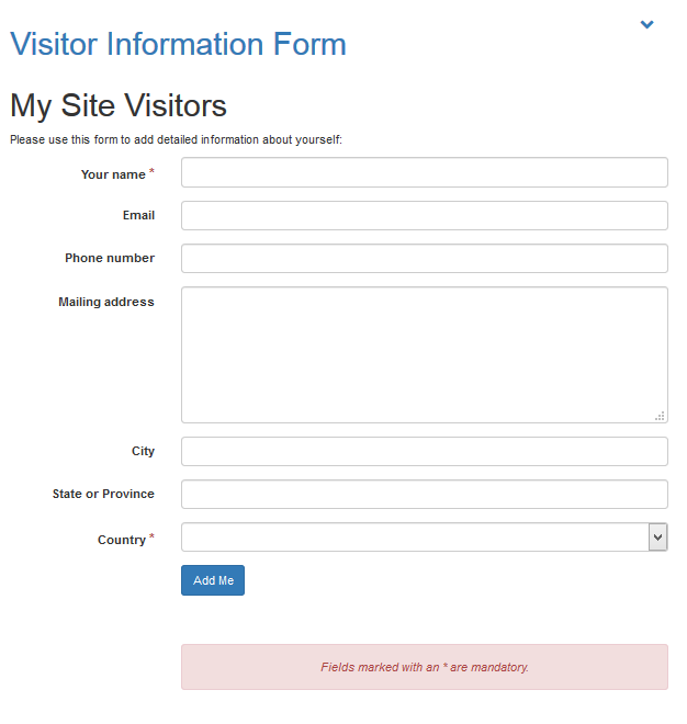 • showmandatory: Tiki will display a * next to each field that is required (such as the Your name, Email, and Country fields).